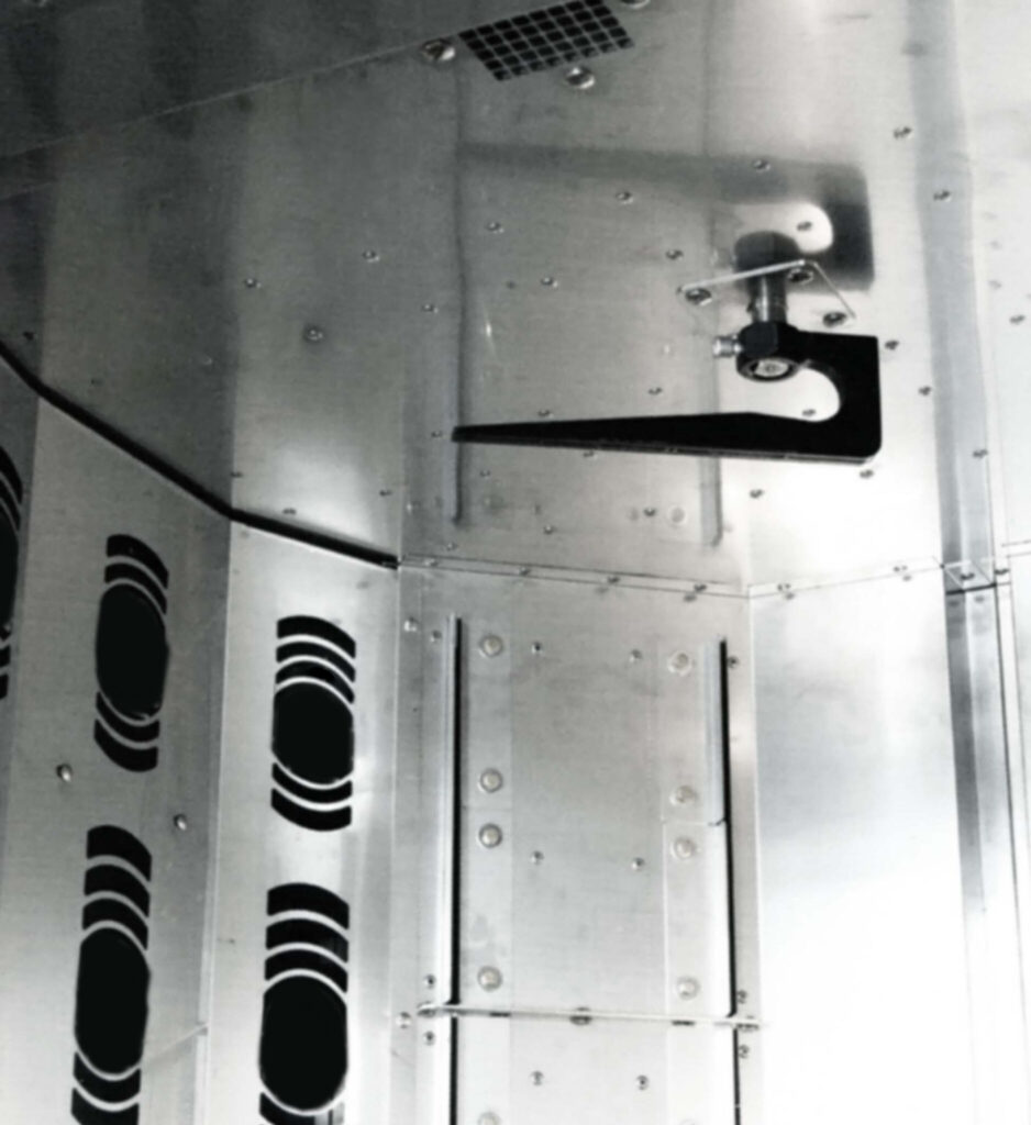 Camera di cottura interamente in acciaio inox contenente carrelli a 9 posti porta teglie da 40x60 cm.